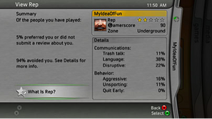 How do i check my rep on xbox? If you are on needs improvement or avoid me status, it will say it on your profile. Is there a place to check this rep?