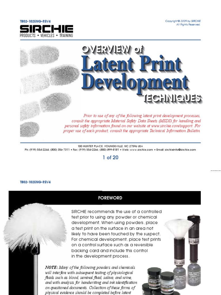 How to develop latent prints. More information on fingerprinting and crime scene investigation techniques can be f. Processing guide for developing latent prints (2000) 6 rubber gloves—semiporous 1. Learn how to develop latent fingerprints using black fingerprint powder.